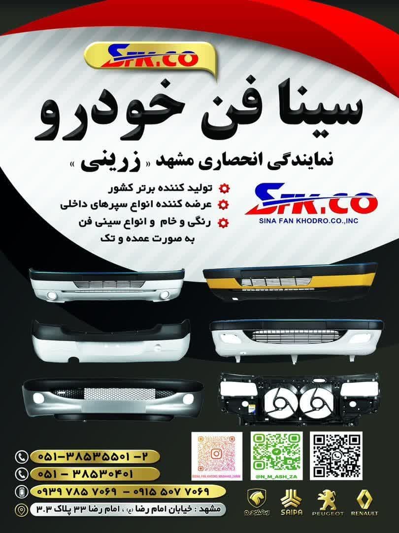 خانه/نمایندگی سینا فن نمایندگی سینا فن سینا فن خودرو نمایندگی شرق کشور زرینی تولید کننده برتر کشور عرضه کننده انواع سپرهای داخلی رنگی و خام و انواع سینی فن به صورت عمده و تک
